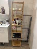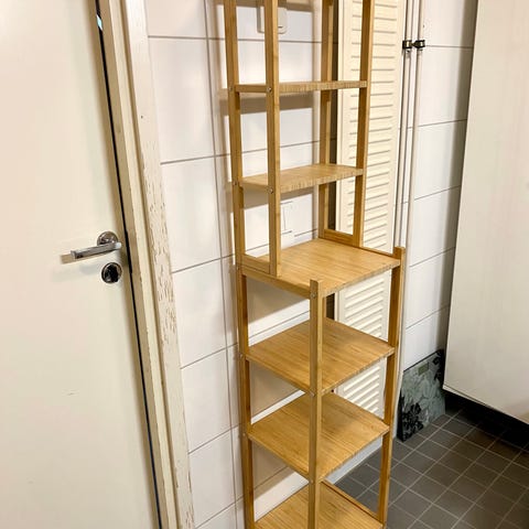 Kuin uusi! Hyllykkö on luonnonvärinen ja soveltuu erilaisten tavaroiden säilytykseen esimerkiksi kylpyhuoneessa tai muissa kodin tiloissa.