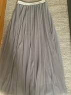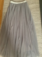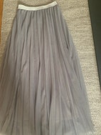 Marks & Spencerin keskiharmaa tyllihame koko 34, mutta todella reilua mitoitusta eli menee kokoa S tai jopa M kokoa käyttävälle , koska vyötärö joustaa. Vuoritettu. Nouto HKI56. Ärräpakettikulut 6€.