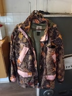 Naisten XL koon takki, vaaleanpunaisin somistein. Muutaman kerran ollut päällä eli takki on lähes uuden veroinen.