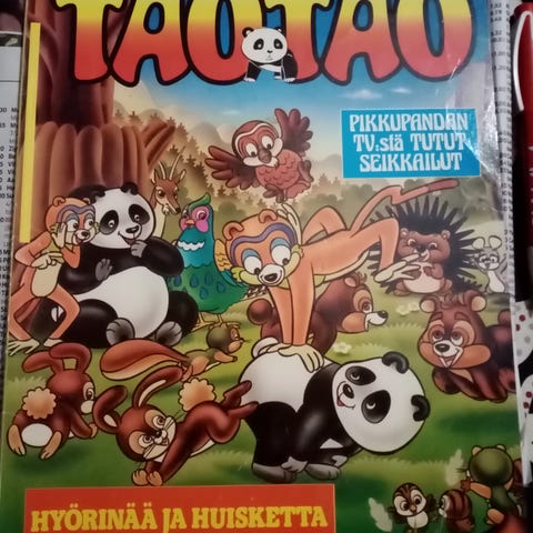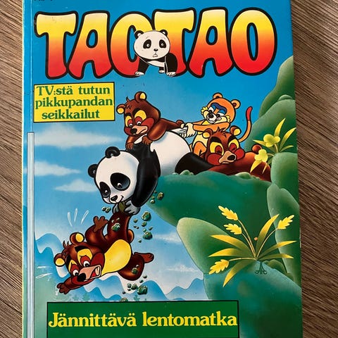 Tao tao lastenkirja, jossa seikkailee pikku pandakarhu. Kirja sisältää värillisiä kuvituksia ja tarinoita, jotka sopivat lapsille.