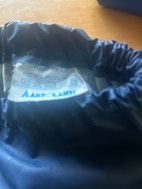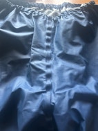 koko 130, merkki aartolahti tummansiniset vähän pidetyt sadehousut, puntissa painettu heijastin