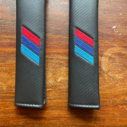 Nahkainen avaimenperä hiilikuitukuviolla ja M-Sport logolla. Metalliset renkulat avaimille, joista yksi vahvempi ja sen saa auki/kiinni ruuvimeisselillä
