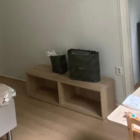 Annetaan puinen tv-taso muuton vuoksi johdoille porattu pieni reikä. Kunto hyvä täyttä puuta