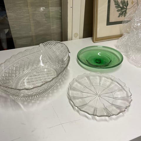 Vanhaa lasia myynnissä - keskimmäinen kristallilasia.