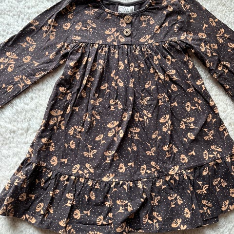 Avainsanat: lastenvaatteet, Mainio, samettimekko, tyttöjen mekko, juhla-asu, arkipukeutuminen, ruskea mekko, pitkähihaiset, pehmeä materiaali, laadukas suomalainen design