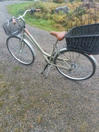 Naisten kaupunkipyörä, varustettu etu- ja takakorilla. Soveltuu kaupunkiajoon ja kuljetukseen. Hyvä kuntoinen ja vähän ajettu. Shimanon 6-vaihteinen takavaihtaja.