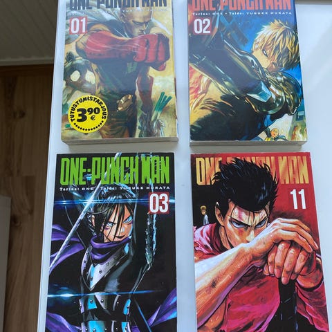 One-Punch Man mangan volumet 1, 3 ja 4 joita ei ole luettu kertaakaan ja on vaan ollut hyllyssä.