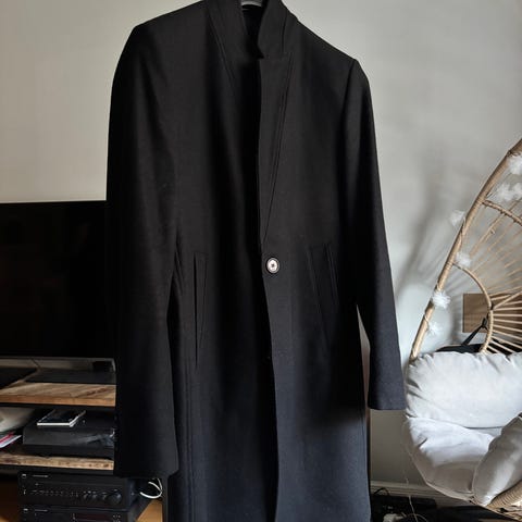 Myydään erittäin hyväkuntoinen miesten Calvin Kleinin musta villakangastakki