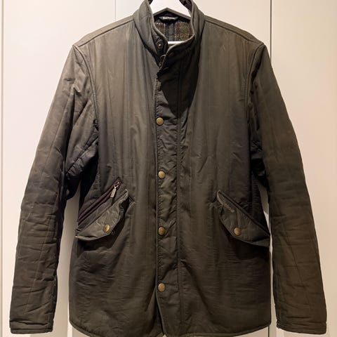 Myydään hyväkuntoinen Barbourin sininen untuvatakki