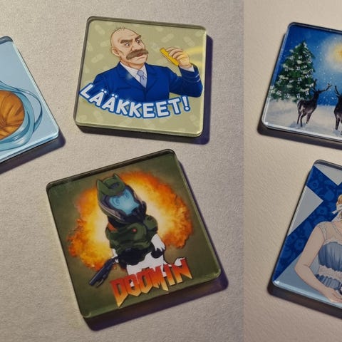 Epoksista valmistettu paksu sydän magneetti.Koko noin.6 cm/ 2cm. 3€/ kpl. Voidaan postittaa.