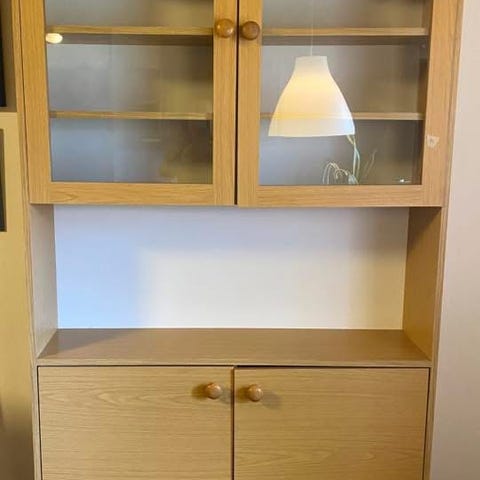 Säilytyskaappi lasiovilla ja puuovilla