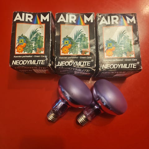 Neolux- tai Neodymlite-lamput ovat värintoistoltaan tavallisia hehkulamppuja miellyttävämpiä, sillä niiden lasikupu on sävytetty neodyymioksidilla. Neolux-hehkulampun keksi vahingossa Teknillisen korkeakoulun professori Olavi Erämetsä. Hän laittoi ruokailun ajaksi vahingossa päähänsä neodyymioksidilla käsitellyt silmälasit ja havaitsi ruoan näyttävän väreiltään tavallista herkullisemmalta. Airam toi Neolux-hehkulamput markkinoille 1967. Niitä markkinoitiin tuomaan kodin sisustuksen värit iltaisinkin paremmin esiin. Neodyymivärjättyjä hehkulamppuja on käytetty myös kasvilamppuina ja päivänvalolamppuina.