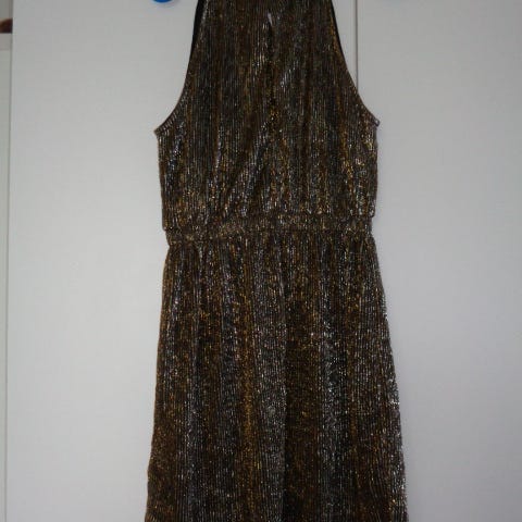H&M juhlamekko kultaisessa värissä, koko 36. Mekko on valmistettu kiiltävästä materiaalista. Naisten vaate.