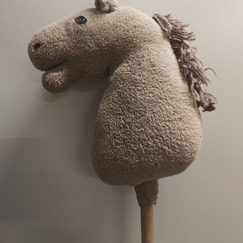 Kaksi keppihevosta, tarvikkeita ja heppakirjoja