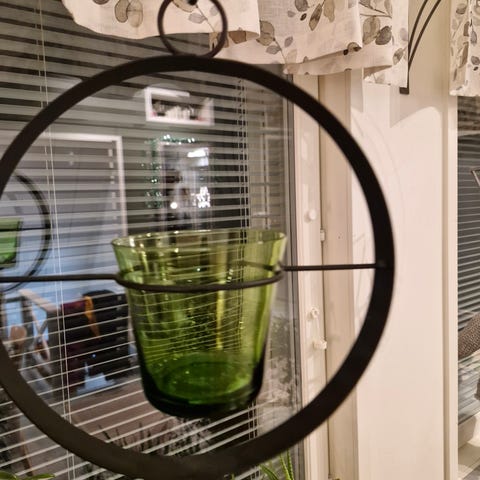 Metallinen riippuva lyhty mustassa värissä. Lyhty on muotoiltu avoimilla metallisangoilla, jotka muodostavat soikean muodon. Sopii sisä- tai ulkokäyttöön, esimerkiksi kynttilän tai pienen valonlähteen sijoittamiseen. Korkeus noin 32, metallikoukku noin 31 cm