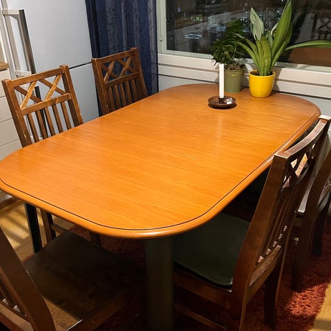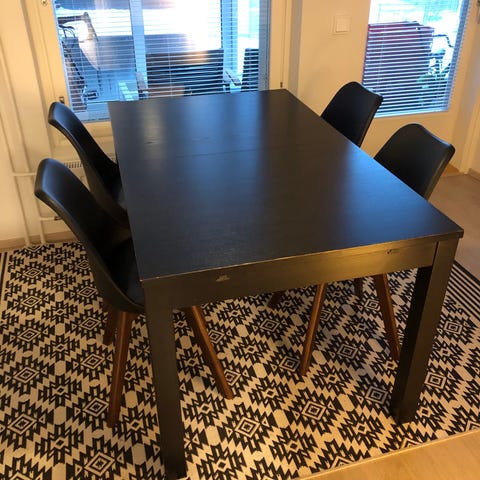 Laadukas Ikean jatkettava ruokapöytä. Pinnassa käytön jälkiä ja muutama naarmu/kolhu. Jatkopala 55 cm, jolloin kokonaispituus 210 cm.