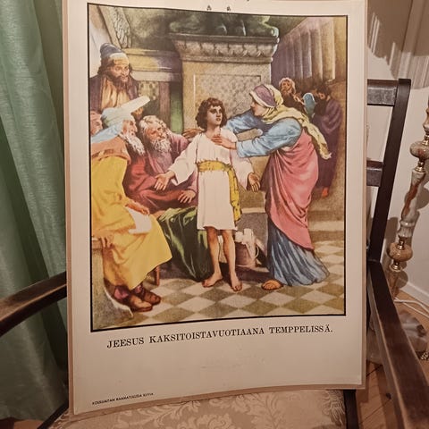 Opetustaulu Jeesus ratsastaa jerusalemiin