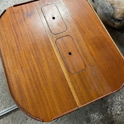 Veneveistämön tekemä tukeva ja laadukas tiikkipöytä joka on ollut Maestro purjeveneen sitloorassa. Tämän saa helposti muokattu ja pienellä kunnostuksella vielä loistokuntoon.