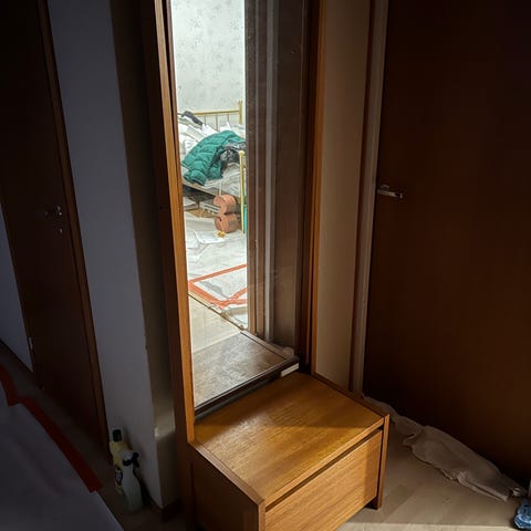 Oletan, että tämä Svedbergsin vintagepeilikaappi on vähintään 70-luvulta ellei 60-luvulta, kun talo on rakennettu 60-luvulla ja peilikaappi lienee korvattu 70- luvulla toisella. Ikäänsä nähden varsin hyväkuntoinen peilikaappi, ehdin pyyhkiä kuviin vain päällisin puolin kostealla rätillä. Soveltuu muuallekin, kuten ilm. on 70-luvulta tehnytkin, ei siis ole ollut märkätiloissa vuosikymmeniin. Mitat pyöristetty ylöspäin, yksikään mitta ei ollut tasasentti.