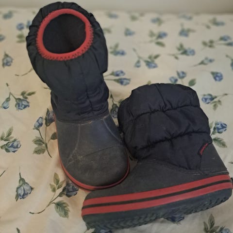 Crocs lasten saappaat, koko on c7 joka vastaa 23-24. Ei sisävuorta.