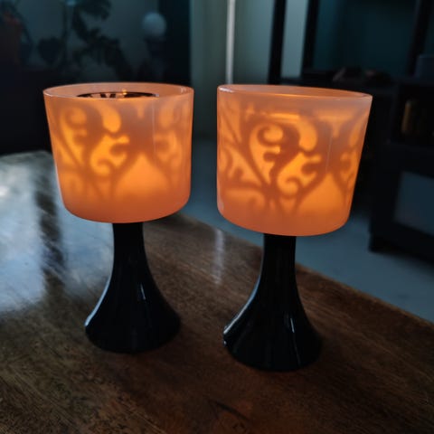 Kuvienmukaiset erittäin hyväkuntoiset erilaiset kynttilänjalat ja hurrikaanit nyt edullisesti pois nurkista pyörimästä.