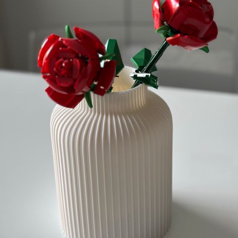 Paksua lasia oleva maljakko. Maljakossa lehtikuviointi.