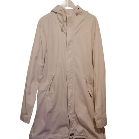 R-collectionin pitkä anorakki värissä metsänvihreä. Kerran kokeiltu päälle, mutta jäänyt käyttämättömäksi. Vettä ja likaa hylkivä pinta. Sopii niin naisille kuin miehille.