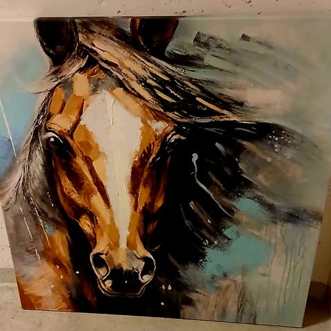 Hevostaulu. Kuvan osuus keramiikkaa ja kehykset puuta.