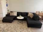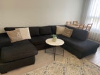 Myydään iso kulmasohva, musta ja hyvässä kunnossa.