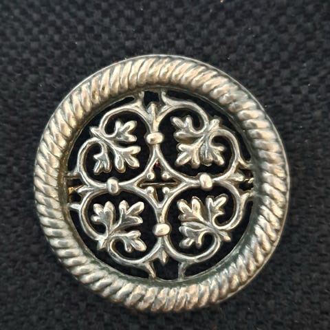 Pronssinen vanha Rintaneula joka on kuin uusi. Erikoisuus soljen kohdalla luettavissa alta.