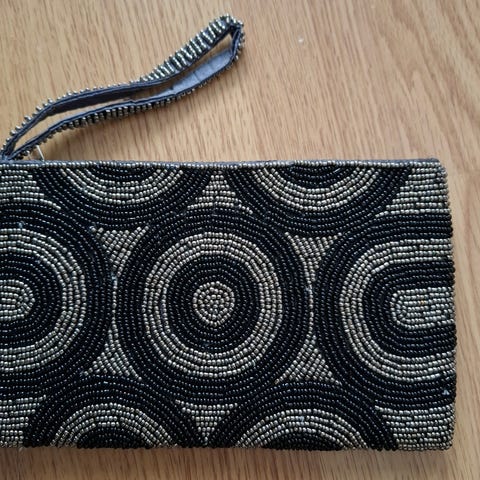 Ihana musta / valk. laukku (kultainen MK - koriste) edessä, upeita kultaisia yksityiskohtia.