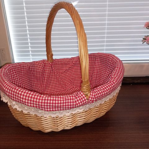 Punottu kori vaikkapa tarjoiluun. Ollut häissä liinakorina.