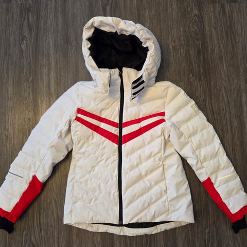 Ostettu uutena ja käytössä kaksi talvea. Väri on hieman arka, joten käytön jälkiä näkyy hihoissa ja vetoketjun ympärillä; tämä on huomioitu hinnassa. Yleisilme kuitenkin yhä siisti ja takki on täysin ehjä.