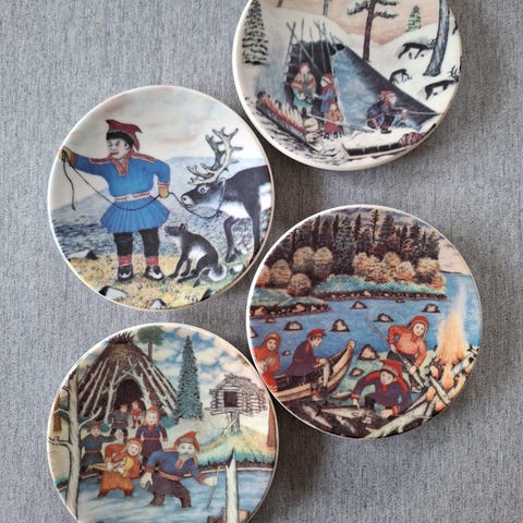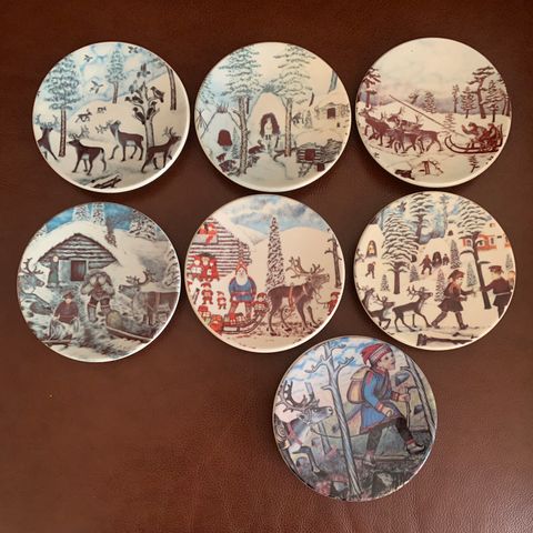 A.Alarieston Arabian Lappi-aiheiset seinälautaset. Läpimitta n. 12 cm. Virheetön kunto. 8 €/ kpl. Kaikki 7 kpl yhteensä 30 €.