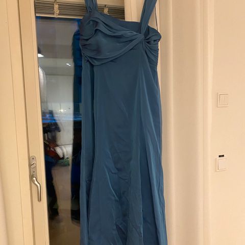 Upea sifonkinen iltapuku, jossa myös bolero-yläosa ja koriste. Väri violetti, vaaleansininen ja harmaa. Takana vetoketju. Erittäin kaunis.