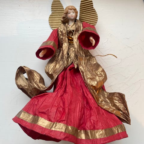 Patteritoiminen jouluenkeli, toimii 2:lla AA-patterilla (ei kuulu pakettiin). Korkeus 20cm.