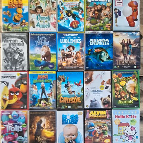 Banaanilaatikollinen DVD leffoja 74kpl. Kauhua,toimintaa,komediaa,ym.
