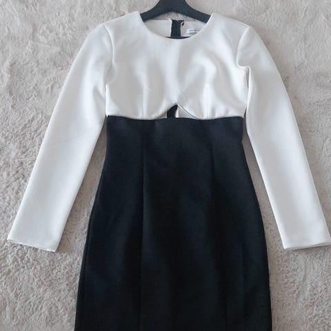 Mekko on näyttävä ja yksilöllinen, rohkea iltamenoihin naiselle, joka uskaltaa olla yksilöllinen ja leikitellä vaatteilla.