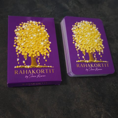 Rahakortit-pakka sisältää 50 erilaista raha-aiheista inspiroivaa, opettavaa ja motivoivaa korttia.