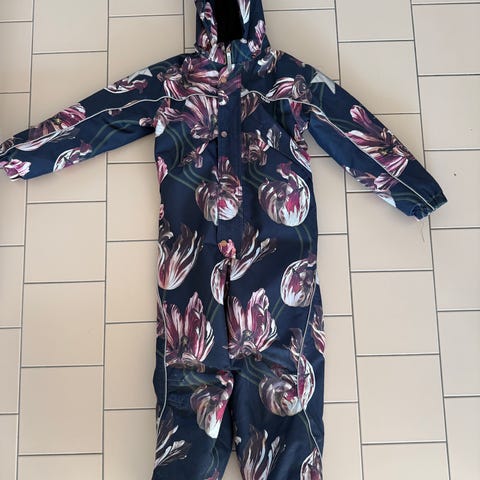 Lämmin toppahaalari suht vähällä käytöllä. Reunatereet vielä kuin uudet. Toiseen polveen on tullut naarmuja kuvassa ja etuläpässä tahra mutta kokonaisuudessaan hyvä haalari. Koko 128 cm. Savuton talous