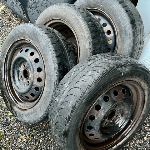 Keskireikä 57.1 mm, näyttää sopivan mm. vanhoihin vw konsernin autoihin. Päällä vanha Michelin Energysaver (2006) pintaa n 5.5 mm, urien pohjilla murtumaa