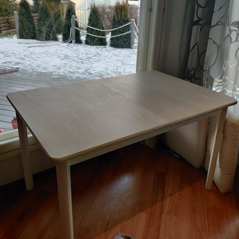 Myydään täyspuinen jatkettava ruokapöytä. Koko 150x95cm, korkeus 73cm. Jatkopala 80cm, jolloin pöydän koko 230x95cm. Pöytä on hyväkuntoinen ja tukeva. Vain nouto.