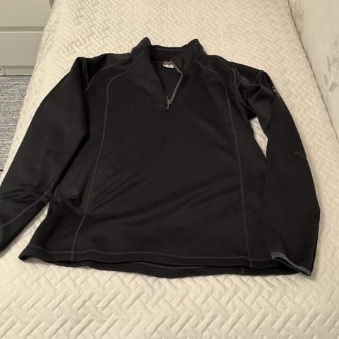 McKinleyn välikerrostakki on joustava, siniharmaa neuletakki vetoketjutaskuilla.