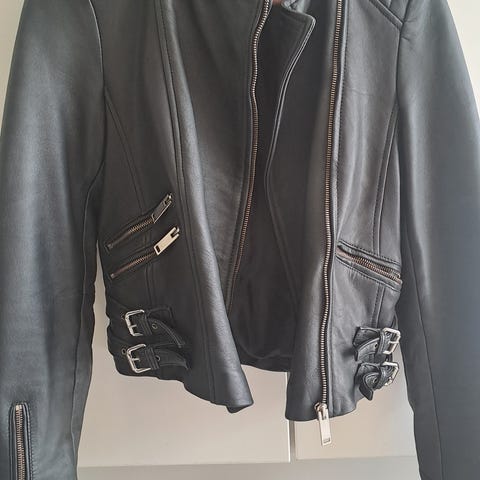 Kaunis pitkä nahkatakki. Olen 165cm ja minulle tämä on nilkkapituinen. Käytetty, mutta yleisilme tosi siisti. Ei kokomerkintää, mutta sanoisin vastaavan kokoa M. Napit joskus siirretty ja siitä jäljet sekä yksi nappi melkein irti(näkyy kuvassa).