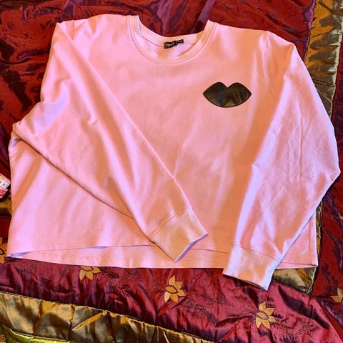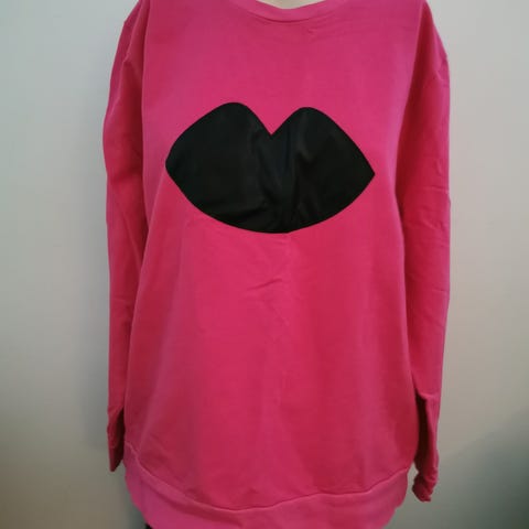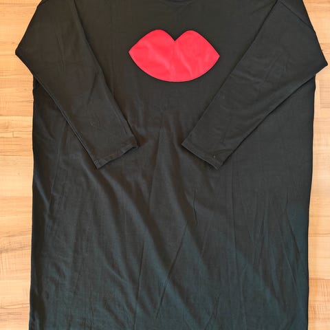 Verkkomaiset hihat, joissa ranteissa resori. Selässä Luppasten tunnettu, nahan tuntuinen huulimerkki