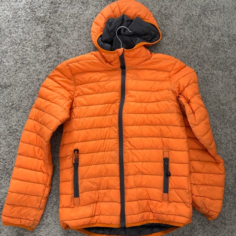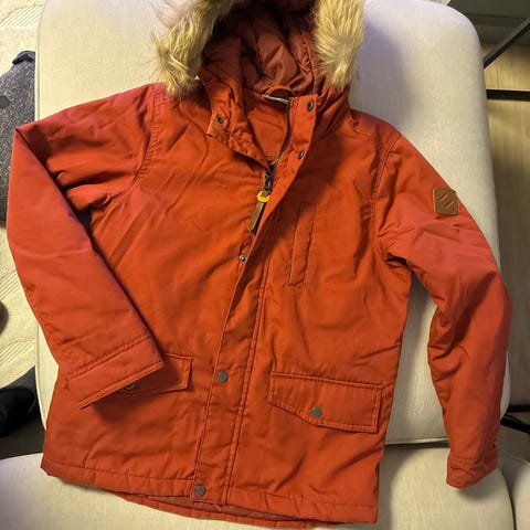 Neomondon oranssi toppatakki koossa 152. Takki on hyväkuntoinen ja ehjä. Tämä on kevyttoppatakkia paksumpi ja soveltuu talvikeliin tai taukotakiksi retkille.