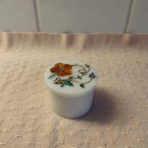 Minulla on myynnissä myös Intia, Taj Mahal tyylisesti työstettyä marmoria oleva korurasia, katso ilmoitukseni.