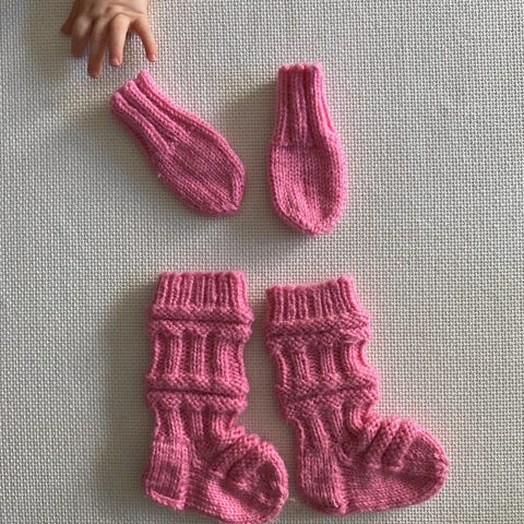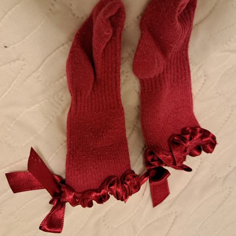 Myydään pakettina sukat ja tumput. Sukat väriltään valkoiset ja tumput enemmän luonnon valkoiset.
