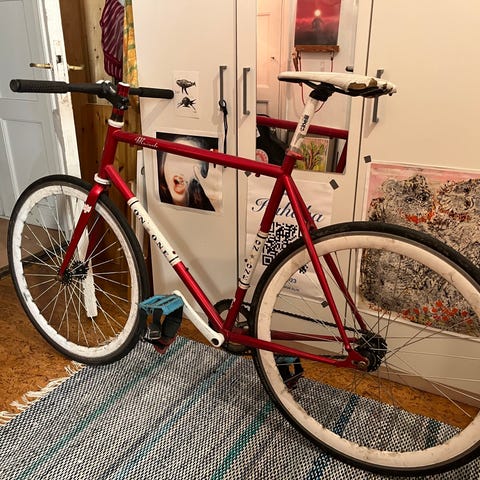 Tämä on jäänyt kellariin keräämään pölyä kun keskiö korkkasi ja en saanut sitä liikkeelle oikein kumpaankaan suuntaan. Joku taitavampi jolla on paremmat työkalut ja kärsivällisyyttä varmasti saa sen kiristettyä. Samassa projektissa kammenulosvetäjä jäi jumiin kampeen, sen saa mukana. Muuten kaikki toimii. Käytännössä myyn koko pyörän kiekkojen hinnalla.