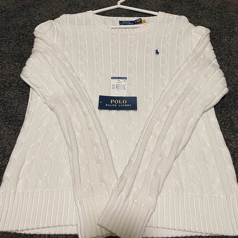 Erittäin hyvässä kunnossa oleva molemmille sukupuolille menevä luonnonvalkoinen Polo Ralph Laurenin cable knit-neule. Kokolapussa lukee XL, mutta suosittelen katsomaan mitat vielä kuvista. Valmistettu USA:ssa.